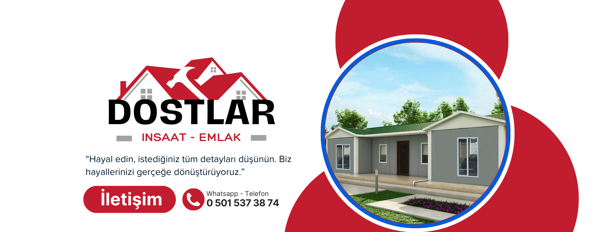 Tüm sorulara ulaşmak için tıklayınız“Prefabrik evimizi Dostlar İnşaat Emlak sayesinde çok kısa sürede teslim aldık. Hem ekonomik hem de çok kullanışlı oldu. Ekip gerçekten işinde uzman.“